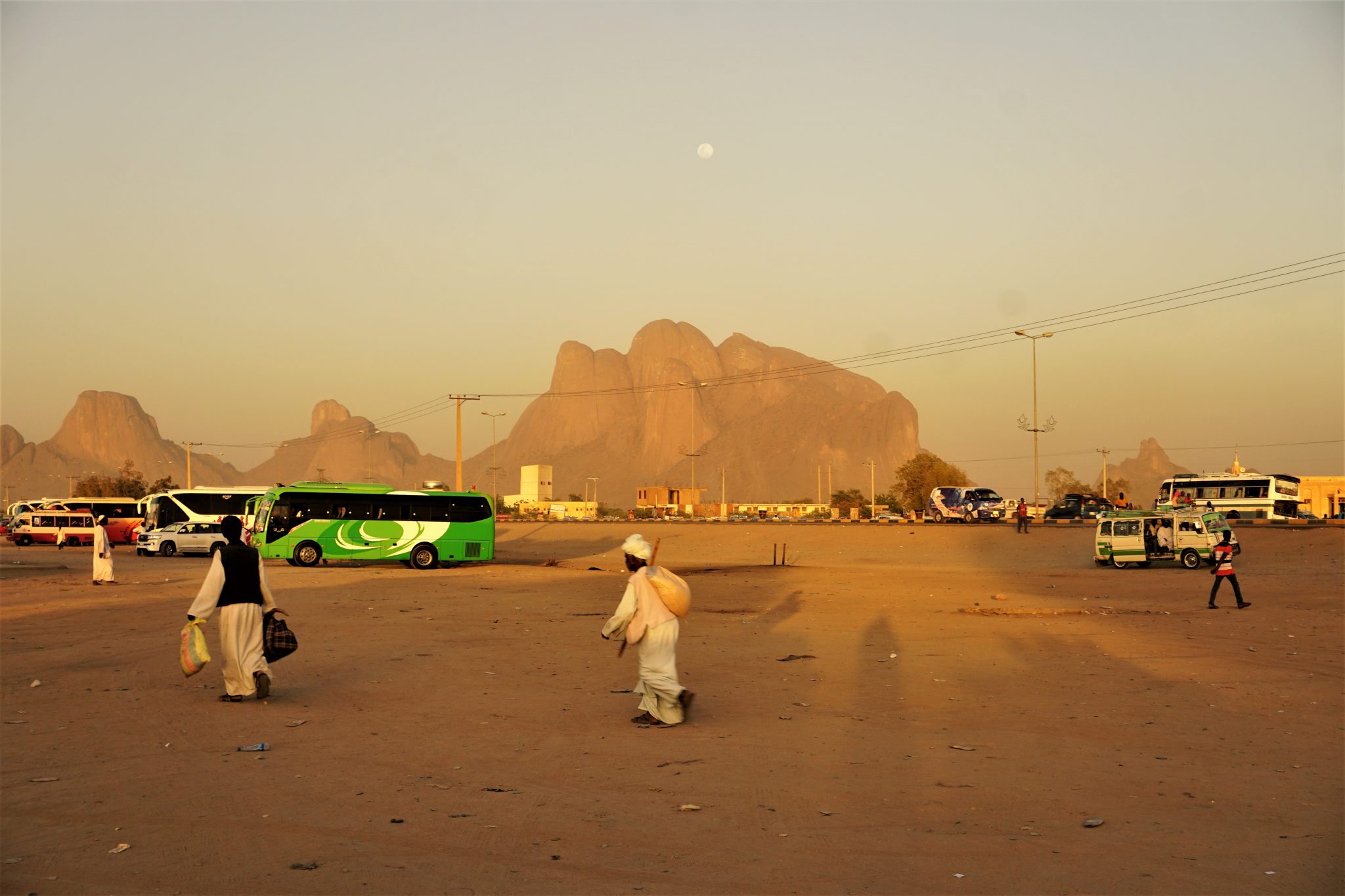 Foi uma longa viagem desde a capital sudanesa, KHARTOUM. O autocarro era bom e até tinha ar condicionado, a estrada é que não acompanhou a evolução móvel. Apesar de asfaltada os solavancos eram constantes. Foram longas 7h de baloiço forçado. Valeu que logo à chegada a paisagem à minha frente indiciava bons momentos nos próximos dias.