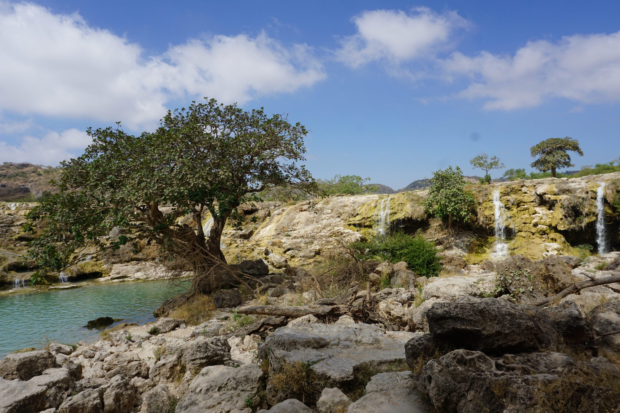 É por isso que este lugar é especial, sobretudo durante as monções ou Khareef entre Junho e Setembro mas é um local visitado durante todo o ano. Tudo fica verde, húmido, fresco. Tudo pelo qual qualquer Omanita desespera.  A região de Dhofar sem dúvida serve como um balão de oxigénio aos locais para quem não tem chance de ir até à Europa ou Sudoeste Asiático, para onde muitos vão em busca de verde e…diversão.