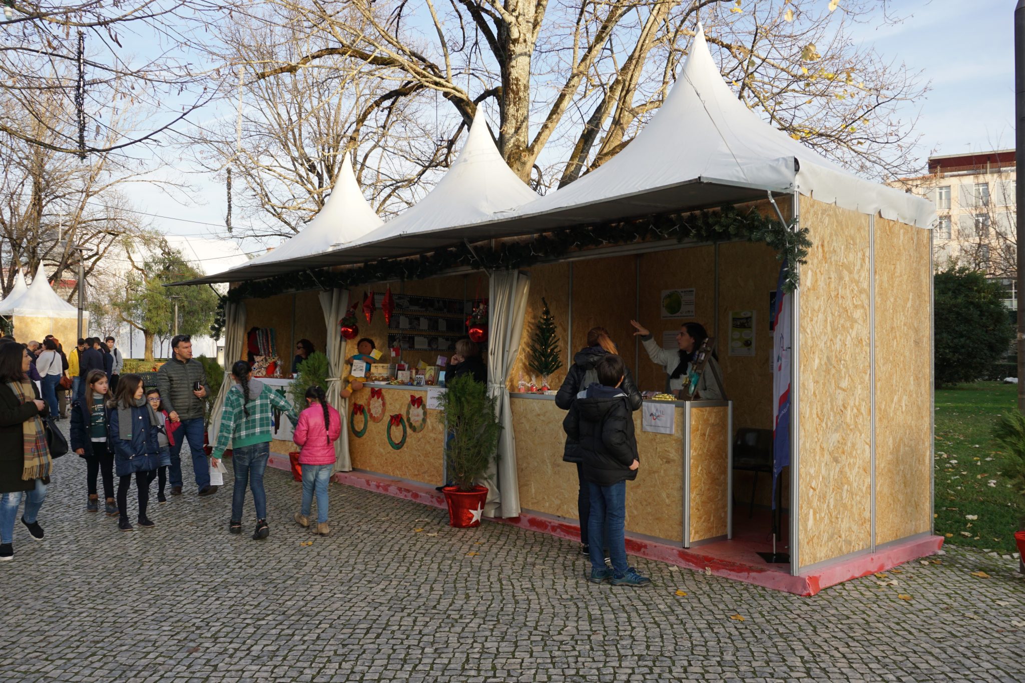 Pelas ruas, podemos ver algumas pequenas árvores de natal feitas por algumas escolas do concelho com material reciclado e também bancas de artesanato local.